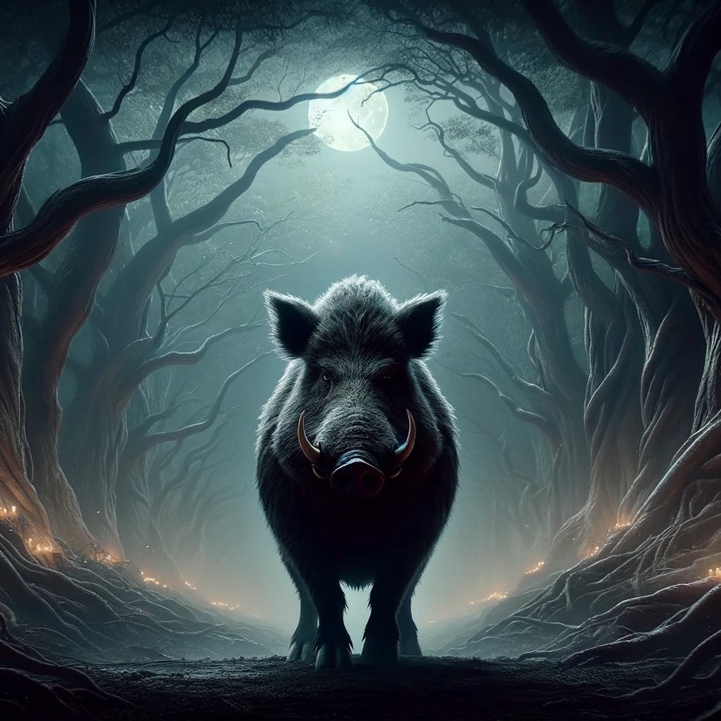 A few hours later, Ysgarlad hears a rustling coming from the direction of the horses. Upon closer inspection, he sees a wild Boar helping itself to the gangs rations. He promptly scares it off. Another hour passes, and Ysgarlad hears the rustling again. A different boar has appeared, this one not looking so willing to run away. It has a malicious look in its eyes. Ysgarlad draws his sword ready for combat.