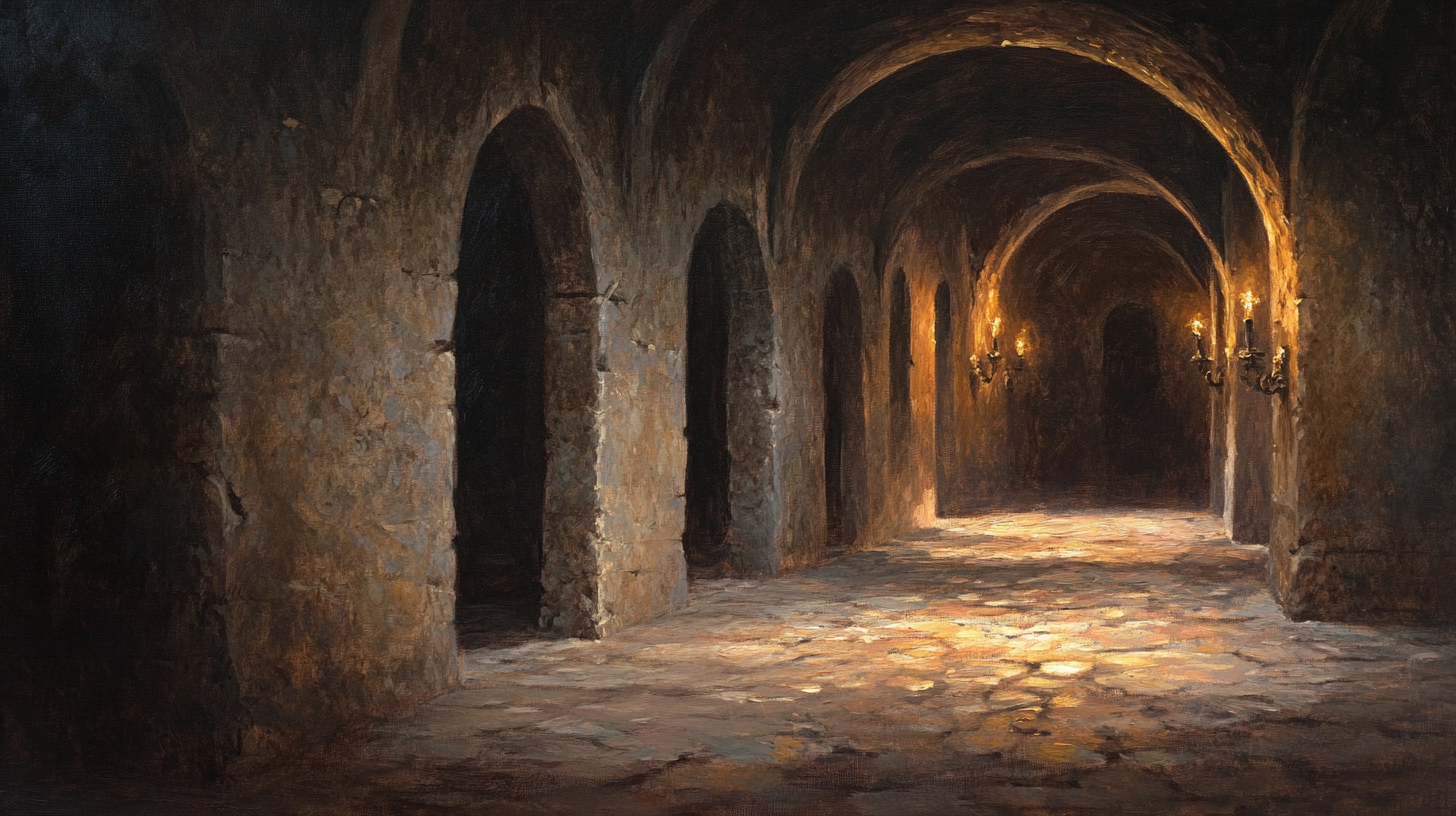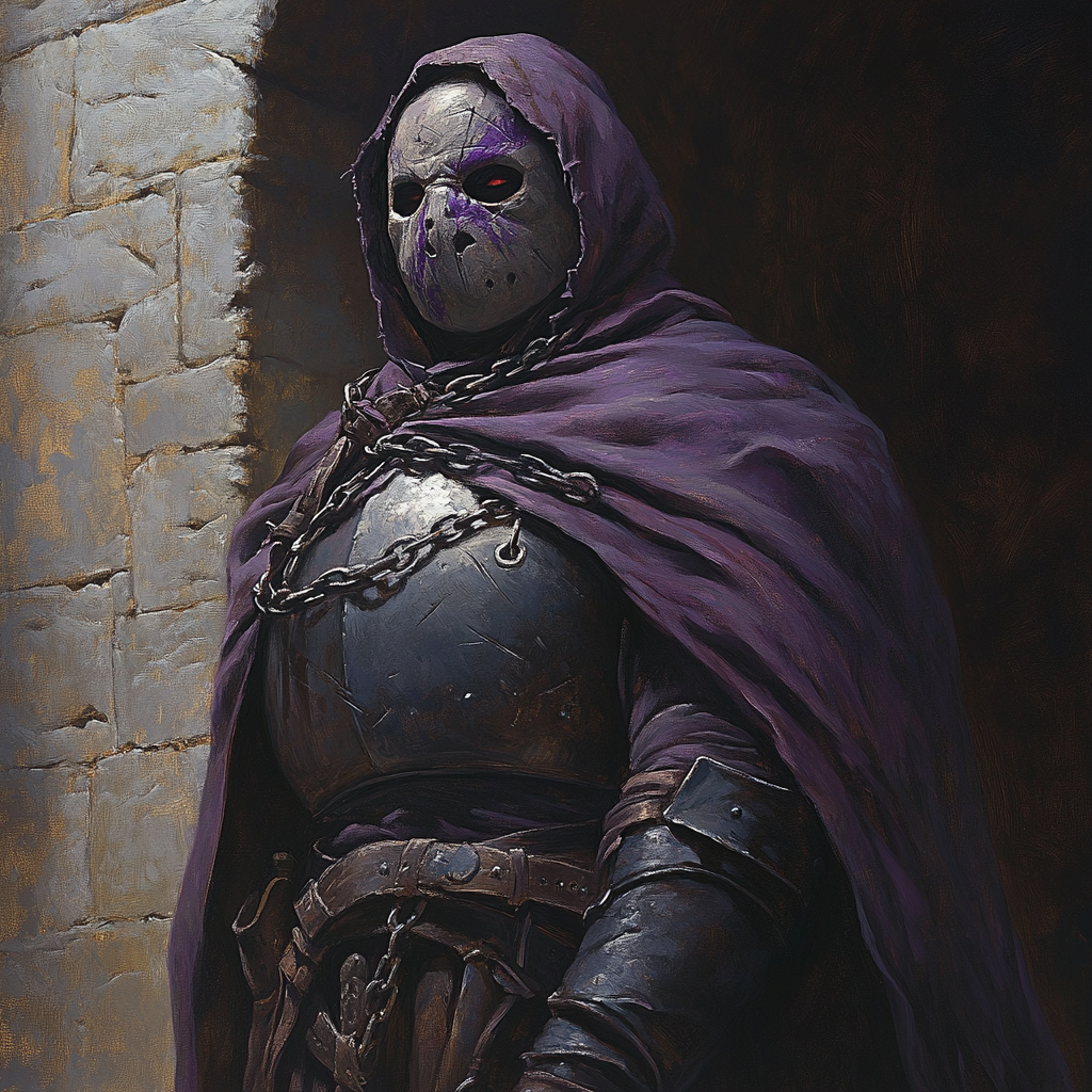 The prisoner takes in his surroundings, a cold stone maze, before looking to the towering figure in front of him.
